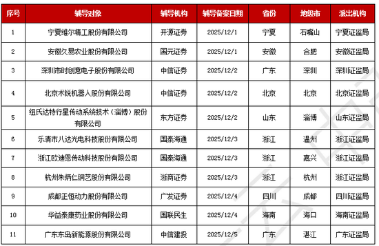根据证监会网站数据,截到12月5日,2025年以来共有269家企业向当地证监局申报IPO辅导备案,其中3家撤回辅导备案,有效辅导备案企业为266家。10家辅导工作完成,12家处于辅导验收状态。