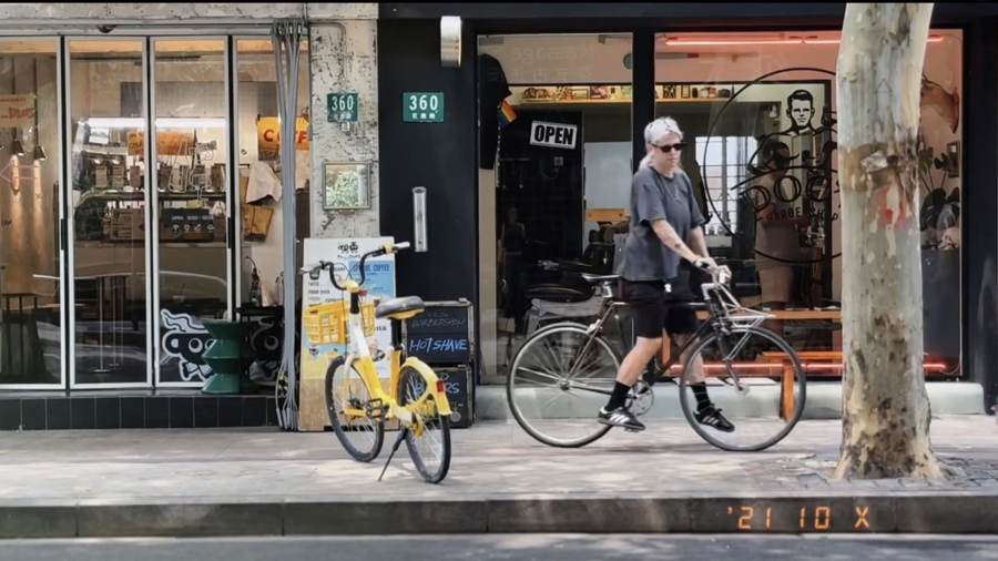 安娜骑自行车来到理发店工作 图片来源:小红书@DOCs Barbershop